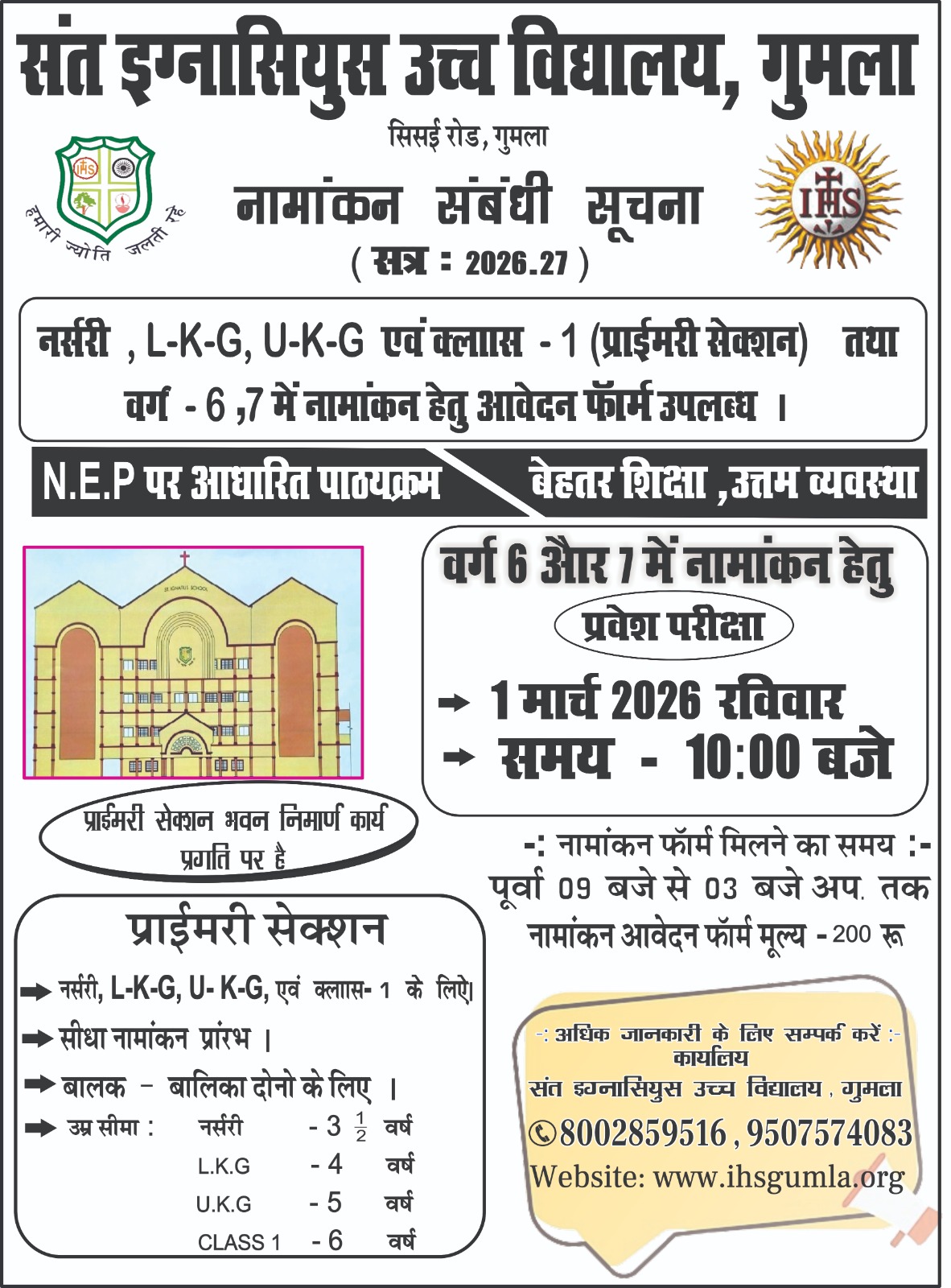 Admission Notice for Primary Section and Class 6 & 7 for the academic session 2026-27![]()